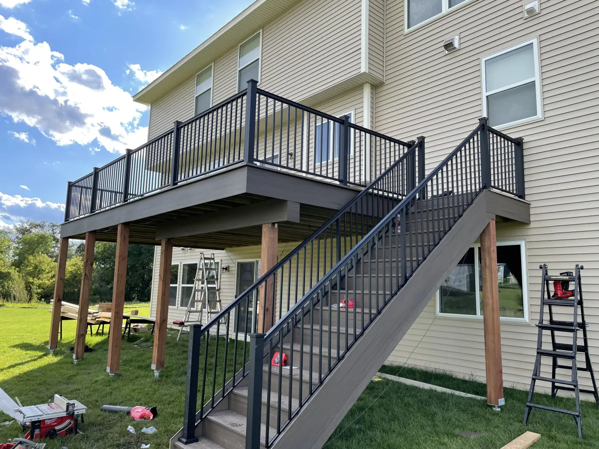 This largely depends on the size and design. Some railings can add an extra $20k+ to your project if you want to get fancy on a big deck. Best thing to do is give us a call so we can give you a rough quote. If it’s in your ballpark then we can come out for an on-site estimate to give you a more exact number.