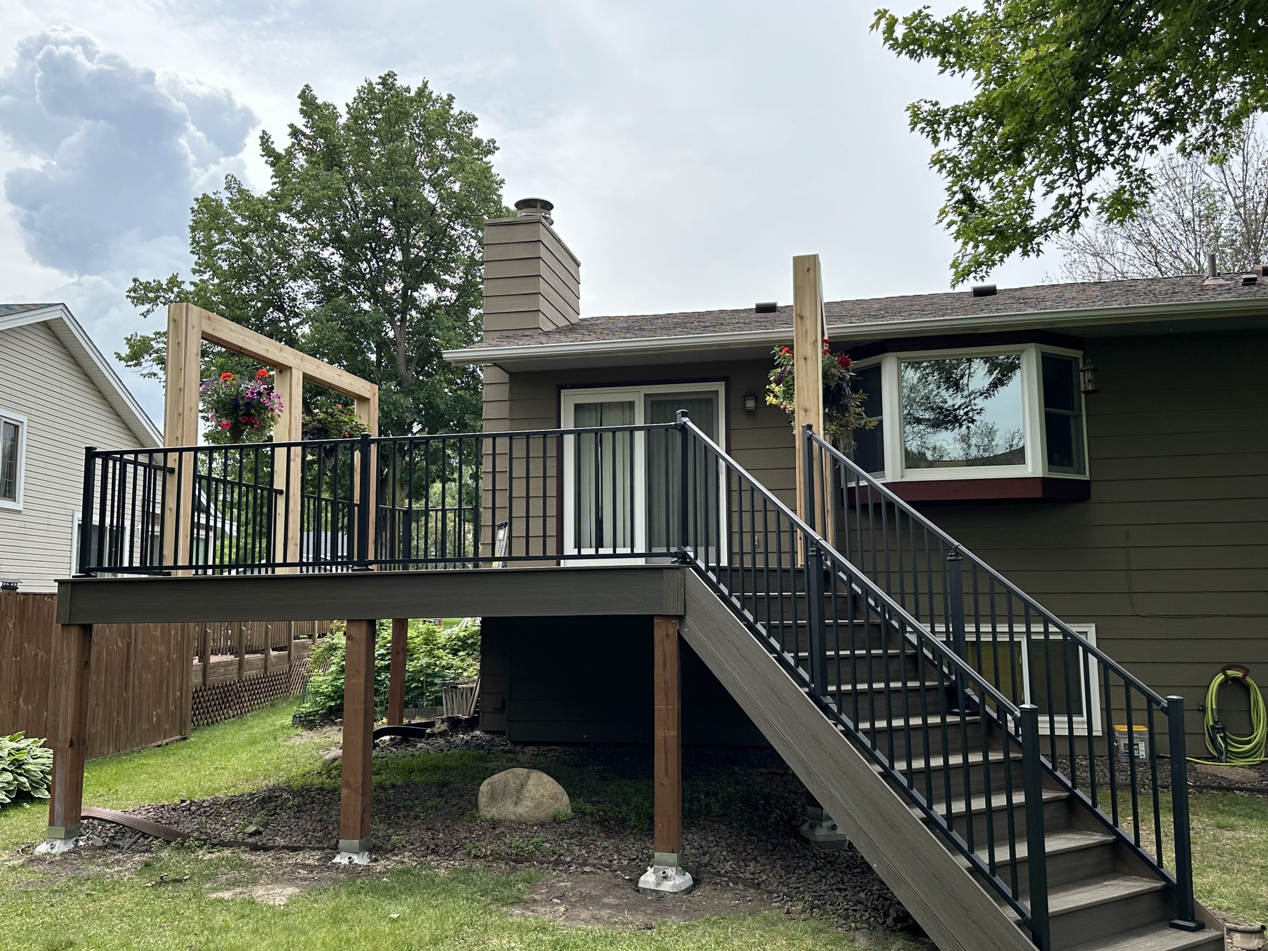 This modern deck project was completed in Eagan, transforming the backyard into a stylish and functional outdoor living space. Designed for durability and low maintenance, the deck combines aesthetic appeal with practical features.